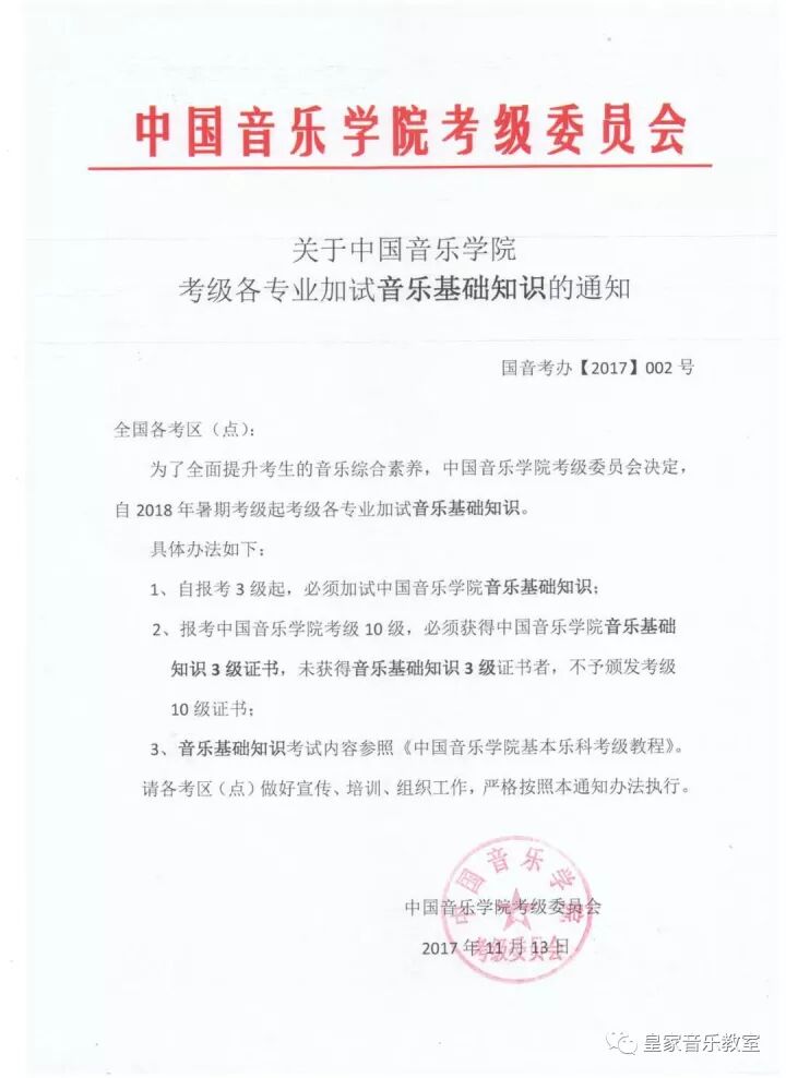 为了全面提升考生的音乐综合素养,中国音乐学院考级委员会决定,自2018年暑期考级起考级各专业加试音乐基础知识。