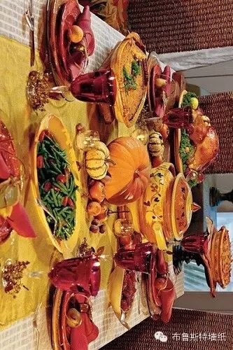 丰盛的家宴在几个月前就开始准备,人们可以吃到苹果、橘子、栗子等各种食物。最吸引人的是精心制作的烤火鸡和南瓜馅饼。在按照传统布置的可爱餐桌旁,家人们一边吃一边愉快地回忆往事,直至最后一根蜡烛燃尽。