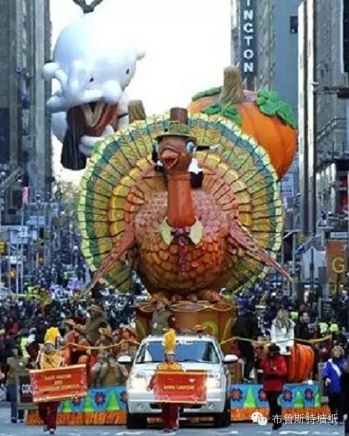从1942年开始的梅西百货感恩节游行是美国当地著名的庆典,学校按照规定放假休息,孩子们也模仿印第安人的模样,画上脸谱或戴上面具到街上唱歌、吹喇叭。