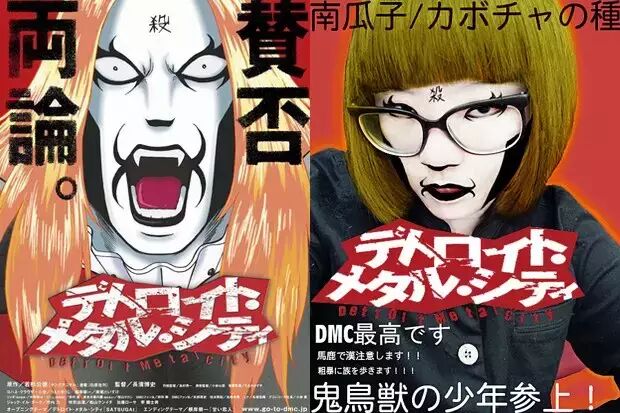 如果看过《重金属摇滚双面人》估计会被这个漫画被这个恐怖画面给吓到了,乐队以夸张的装扮、生猛的乐风以及爆炸性的舞台表演风格赢得了年轻人们的追捧。DMC越来越红,相继击败了同类乐队中的劲敌、著名朋克乐队、HIP-HOP界的名手,创造出一个又一个传奇。