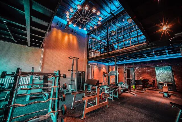 工作室设备功能区布局合理充实,其中包括:有氧区、自由力量、组合器械区、休闲区、团体课区、搏击训练区、私教训练区、更衣淋浴区等。