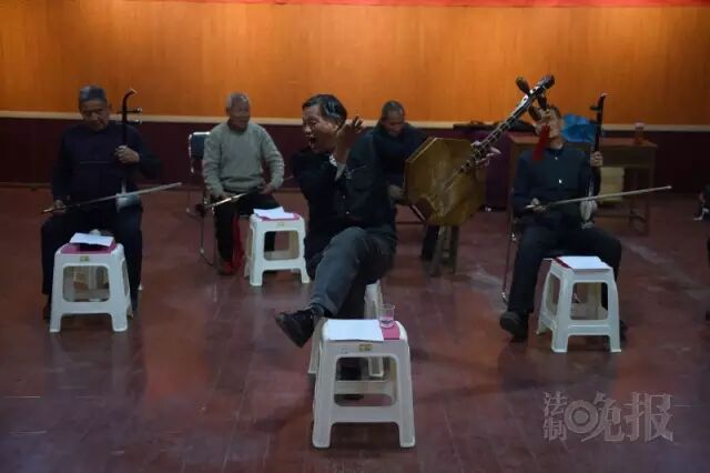 传统的老腔是和皮影相结合的,只要6个人就可演唱一出让人荡气回肠的戏来。一出戏由一人主唱,生末净旦丑全担,其他5人帮腔。主唱怀抱月琴,边弹边唱,还要打板打锣和敲鼓。另一人表演皮影。其他人分别负责板胡、大号、手锣、勾锣、铰子、梆子、铃铃和木块击板等。近10种乐器由5个人承担,每个人身边都是几件家什,放下这个便拿起那个,搭档配合自然是十分默契。这些古老原始的乐器能演奏出铿锵而悠远的旋律,有力地烘托着老腔的唱腔。