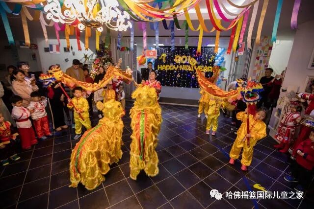 瞧,新年新气象,孩子们用传统的舞龙舞狮表演迎接新年的到来,园长妈妈所扮演的吉祥物狗宝宝更是送来了新年的祝福,中国年的气氛被推向高潮。