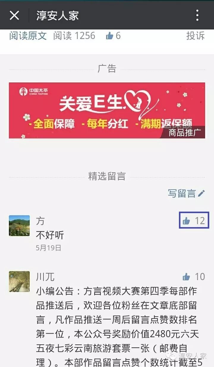 淳安方言视频大赛第四季每部作品推送后,各位粉丝在文章底部留言,凡作品推送一周后留言点赞数排名第一位,本公众号奖励价值2480元六天五夜七彩云南旅游套票一张(邮费自理)。