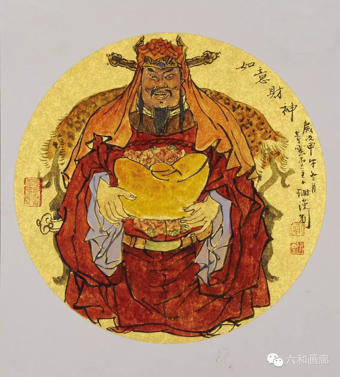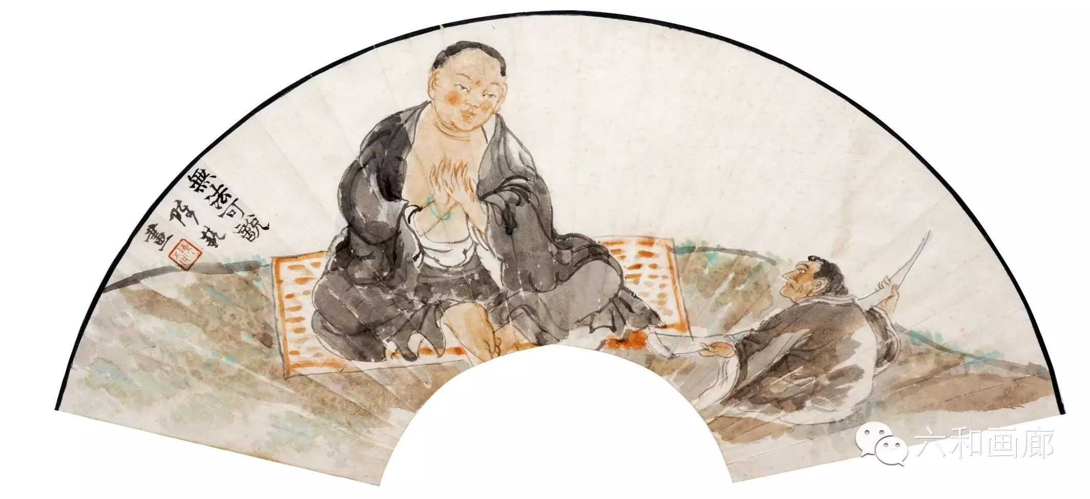 丁茂鲁《刘海戏金蟾》 37×37cm