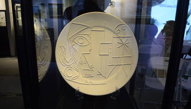 LC艺廊带来了毕加索30年三个创作时期的代表性陶瓷作品,包括《杰奎琳在画架旁》《戴着花冠的女人头像》等。其中,毕加索最贵的陶瓷作品《戴着花冠的女人头像》标价120万元。