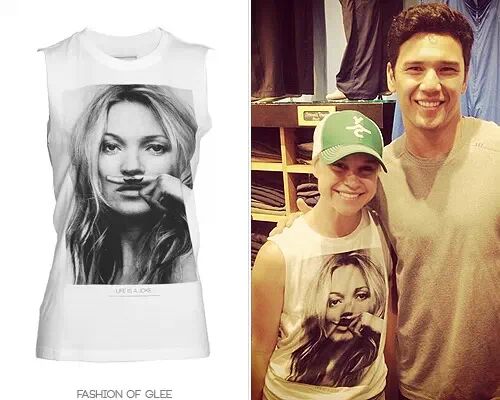 在单品中超模KATE MOSS以超大人物图像加上胡子的俏皮图案,看上去别有一番风格。