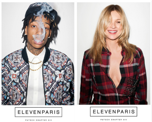 ELEVEN PARIS的产品多是以当下最热门的话题以及与各种欧美明星和品牌的合作为主。其中新一季最新单品邀请了Wiz Khalifa与KATE MOSS进行合作,推出了多款套头卫衣以及T恤,并且限量发售。