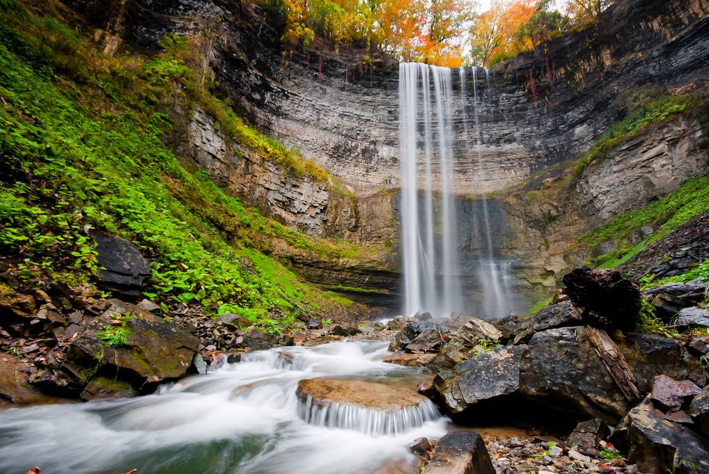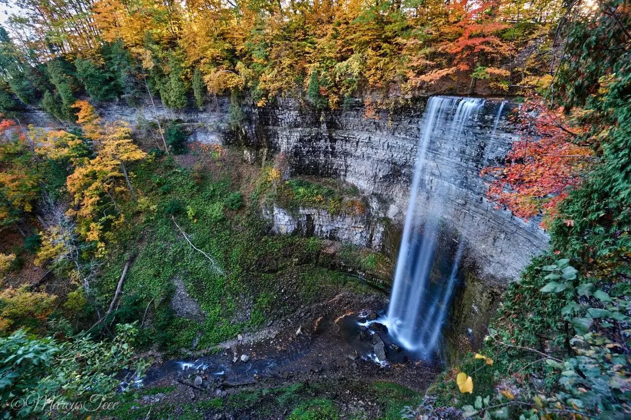 在河流湖泊众多的安大略,除了场面恢弘的大瀑布,还有涓涓细流汇成的山间瀑布,图斯瀑布(Tew’s Falls )高达41米,却宛若一条丝带,从山间缓缓流下。正是因为它的这一特点,很多胆子够大的游客都会在悬崖边上与它拍照。