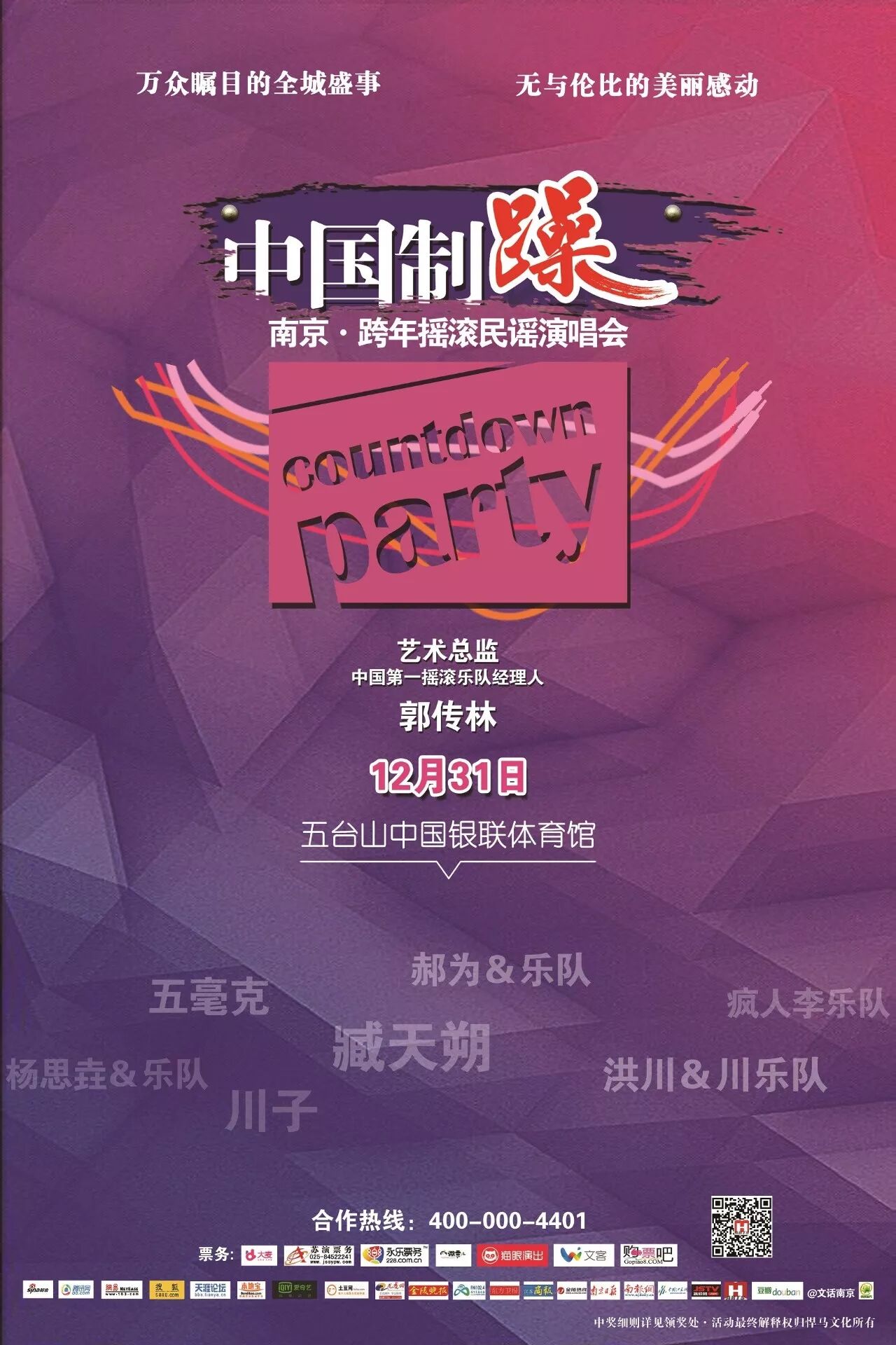 中国第一摇滚乐队经理人郭传林携手“臧天朔”、“川子”、“郝为”、“洪川”、“疯人李乐队”、“杨思垚”和“五毫克”共7只乐队,于2017年12月31日,在“江苏五台山中国银联体育馆”重磅登场,在炫丽的舞台灯光、震撼的音乐节奏中,和现场的观众们一起迎接2018年的到来!