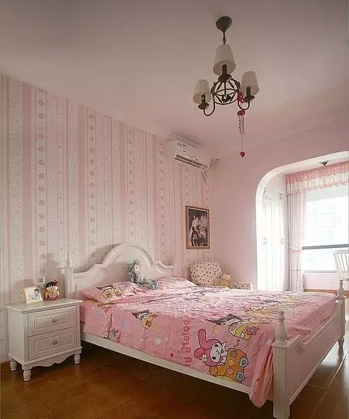 儿童房里的家具都是孩子自己挑的,田园风格是小公主的最爱。可爱的卡通床单、甜美的布艺沙发,粉色的壁纸装饰,能真切感受到一颗童心在跳动。