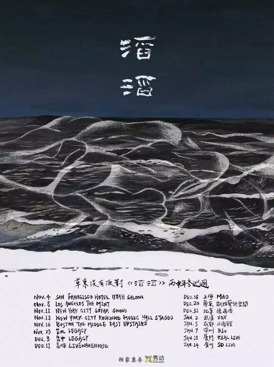 草东没有派对今年展开的《滔滔》丙申年冬巡迴,不但首度踏上美国,更规划了在大陆的首次完整巡演。这次巡演将停留南京、北京、武汉、成都、深圳、上海、厦门与广州八站,作为团员入伍前与歌迷的暂别作。