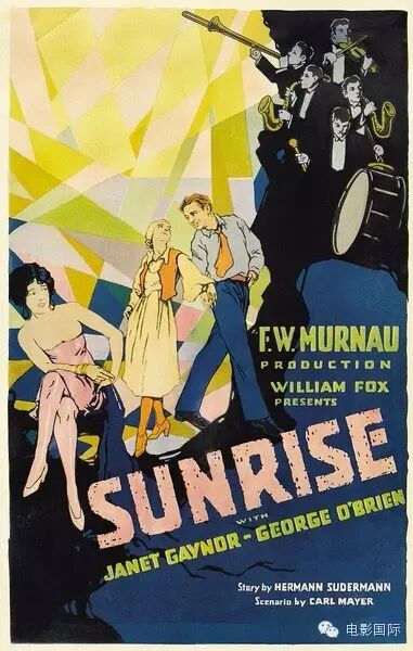 在早期默片电影时代,诸如F·W·茂瑙、查理·卓别林、罗伯特·威恩(德国电影奠基人)等电影先锋创造了字幕的形式以推动电影剧情的发展,加强观众的电影代入感。早期默片的字幕不如现在的字幕这样贯穿全片,一般都是为了标注和结施关键剧情。然而,人们跑到电影院里来看电影,并不是来享受寂静的,如果是为了享受寂寞,他们可以跑到电影院里去看书。所以,默片时代除开字幕以外,往往要有音乐的伴奏。而在电影配乐史上,F·W·茂瑙的代表作《日出》是第一部带有配乐录音的电影,它采用了当时福克斯电影音乐部门最新的电影配乐技术,这也是默片时代的一次巨大跨越。