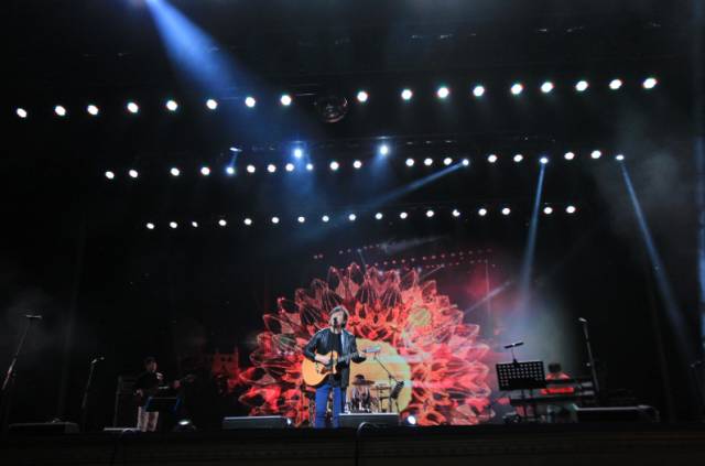 吉他一响起,我明显地感到,台下观众的热情瞬间被他点燃了。这是我第一次现场听马条唱歌。,穿一件皮衣,边拔动吉它边甩头发的样子非常帅气。他唱了《阳光中的向日葵》和《塔吉汗》两首歌,当最后一个音结束,台下的观众响起了热烈的掌声。