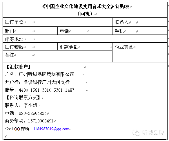 2、按下附账户汇款。汇款后请将汇款底单和填好的《征订表》扫描或截图,在线传至我司工作QQ1184987049或QQ邮箱:1184987049@qq.com,并短信至13719008491通知我们以便我们核查后邮寄。
