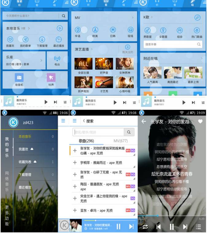 Android版酷狗音乐8.0,全新的界面、专业的音效品质、新颖的音乐社交,焕然一新的皮肤全面升级,更沉浸的视觉体验!酷狗音乐安卓版从7.0版首次”听、看、唱” 共同呈现,全新K歌功能、乐库耳目一新。全新蝰蛇音效!酷狗音乐电脑和移动设备云同步,音乐曲库全,音频解码核心技术专业,音频格式高保真播放。