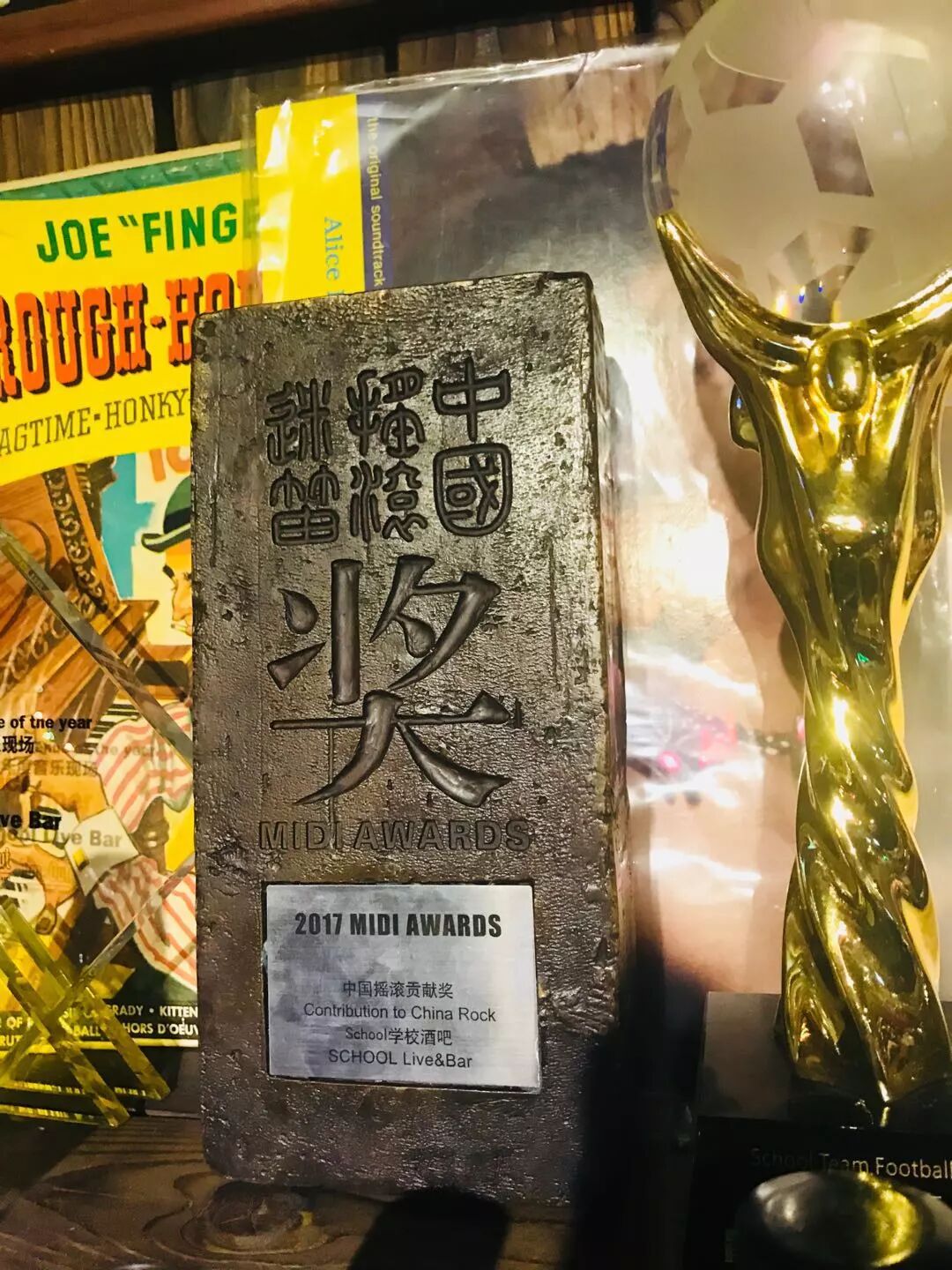 对了,还有一个好消息。在刚刚结束的深圳新年迷笛音乐节暨第九届中国摇滚迷笛奖颁奖典礼上,SCHOOL喜获“中国摇滚贡献奖”!这绝对是一份最令人惊喜的新年礼物!板儿砖沉甸甸,摇滚路漫漫。但觉得,值!感谢迷笛,也感谢在过去的七年里支持和喜爱SCHOOL的朋友们,同学们!昨天朋友圈里都在刷自己的18岁,喜欢摇滚乐的人,永远18岁!祝大家新年快乐!干杯!