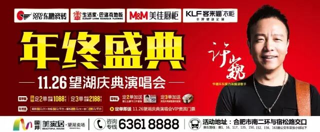 本次望湖美家居8周年庆典演唱会,由东鹏瓷砖、生活家·巴洛克地板、美佳橱柜、客来福家居四大品牌联合冠名