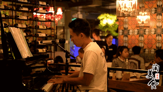 在这里,享用美味的食物伴随着悠扬的钢琴声