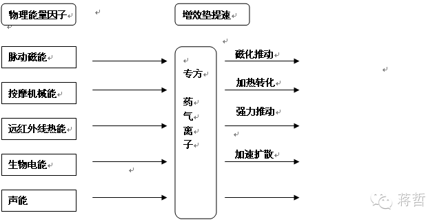 西药见效快主要原因除药物成份所决定外,它的用药方式也很重要。有些西药不用口服就能将药物直接导入人体,例如肌肉注射和血管点滴,此法直接,见效快,通称为有针液体注射。而现今,增效垫提速法是无针注射,它的运作方式是运用脉动磁能、远红外线热能、按摩机械能、生物电能四大物理能量因子推动下将磁化的中药粉迅速分解雾化为专方药气离子,用增效液穿透人体皮肤扩张的汗腺直接病灶,速克顽疾,达到快速治疗目的。对比西药静脉注射,药物到达病灶并发挥作用的步骤减少了输导、分解、吸收等三道程序,所以定名为增效垫提速疗法。