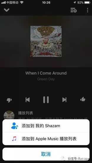 其实早在正式收购之前,Shazam的部分功能就已经与Apple Music完成了整合。如果你在iOS端打开Shazam应用程序,点击识别歌曲按钮,识别结果所显示的音乐媒体库就是来自Apple Music。如果你同时也是Apple Music的订阅用户,便可以将这首歌曲直接添加到播放列表(或者直接在Shazam里打开Apple Music进行播放)。