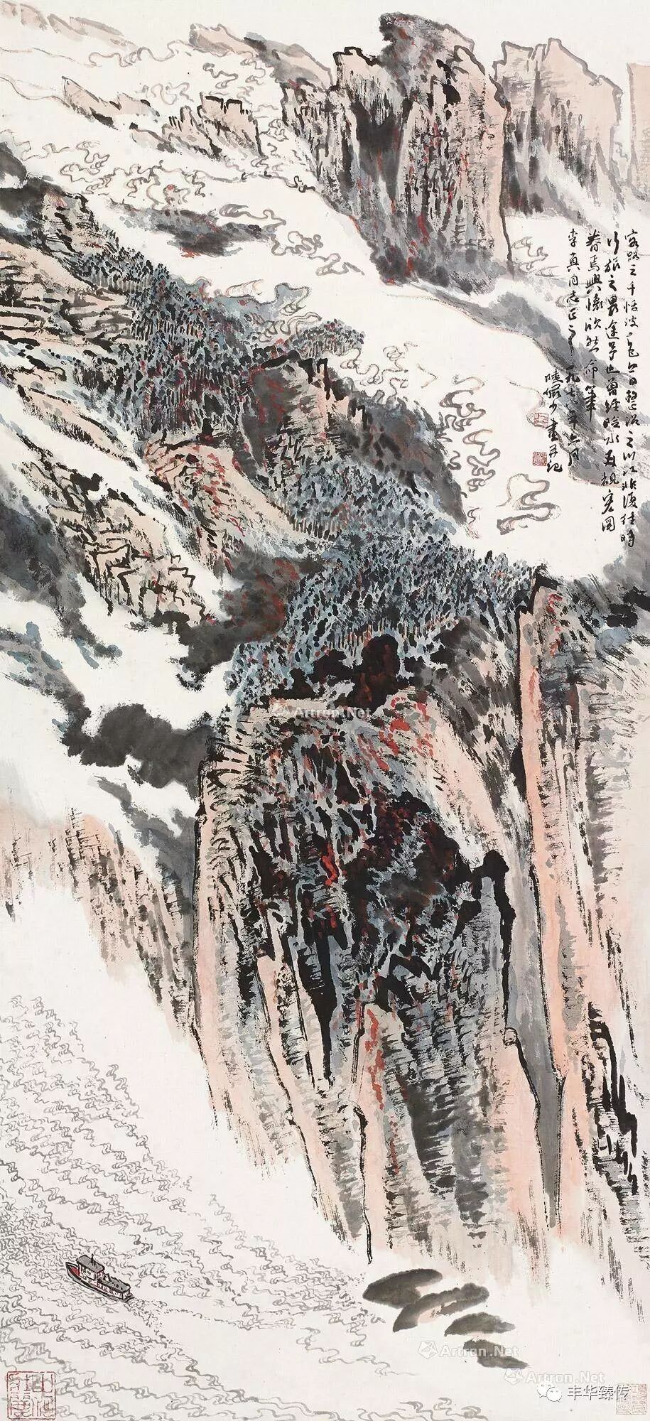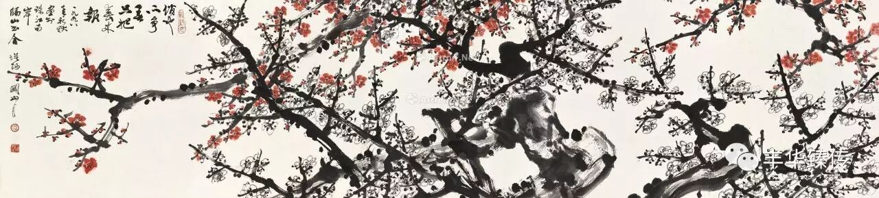 其他大师级作品有:齐白石的《无量寿佛》、《双喜坚固》,吴湖帆的《群玉斋校碑图》,傅抱石的《湘夫人》,李可染的《黄山烟霞》,吴冠中的《春苗》,关山月的《万里长城图》等皆为精彩佳构。