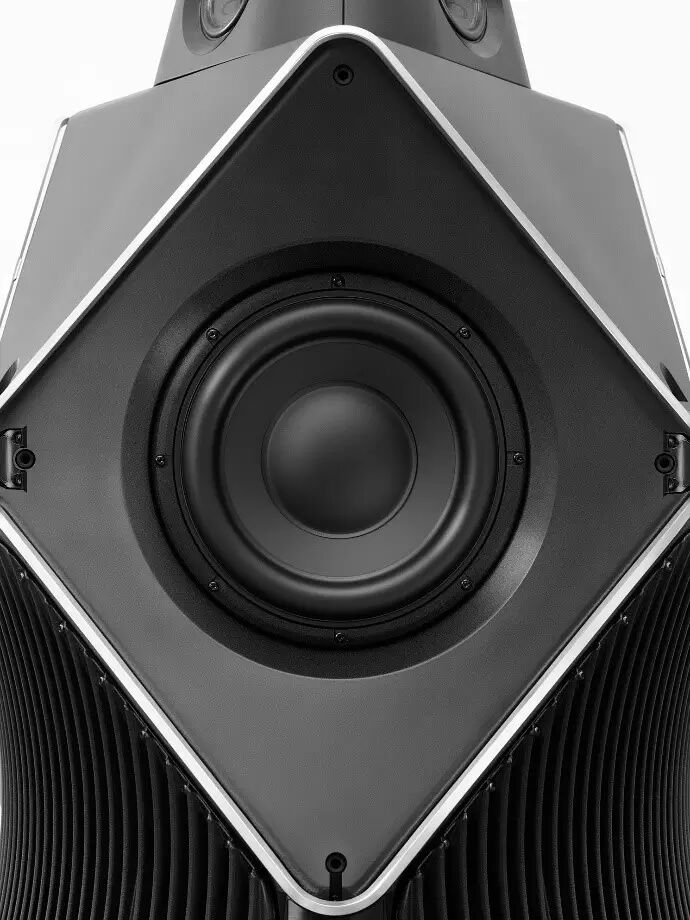 王者中的王者属 90 周年献礼登场的 BeoLab 90 扬声器,360º设计,以总重量超过 65 公斤的复合铝合金音箱为基础,18 个 Scan-Speak 定制扬声器单元、内部新一代 14 声道 ICE power 功放、以及四个额外 D 级功放。想要拥有影院般身临其境的效果,BeoLab 90 是当之无愧的最佳选择。