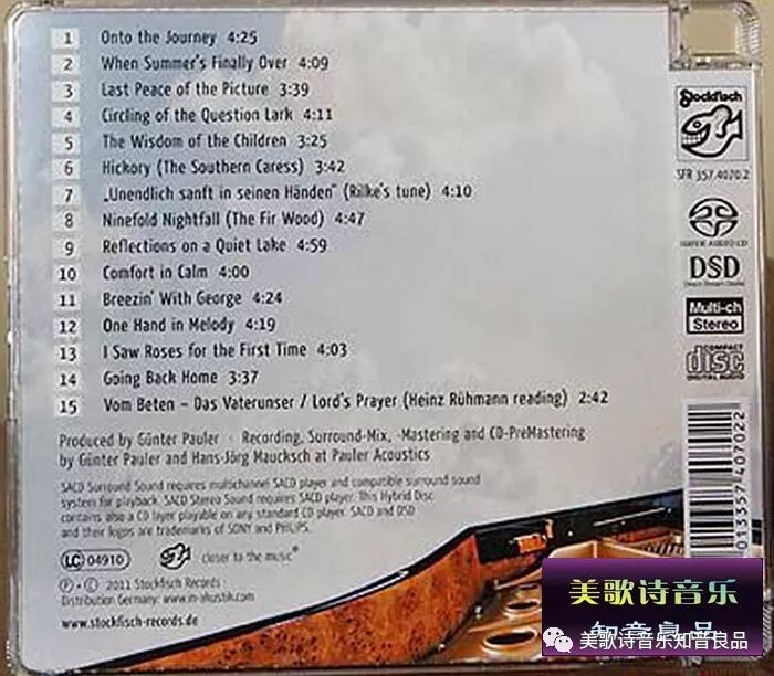 别以为只有SACD唱盘的拥有者才能享受直刻录音的好处。在这张唱片的CD层中所记录的PCM讯号,也是从两声道DSD母带直接转换而来,因此比起一般PCM录制的方式,也少了母带处理的过程,一样会显得更为传真。