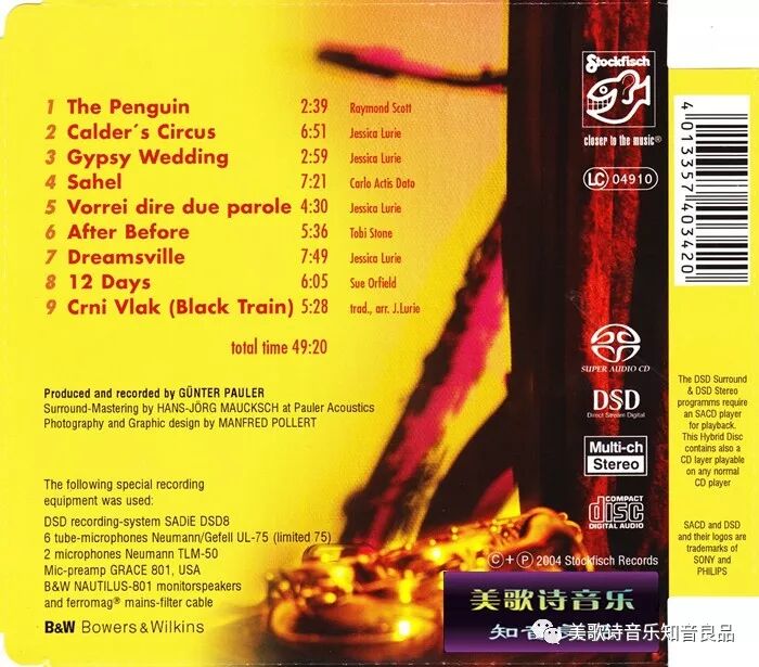 Stockfisch推出的这张“直刻录音SACD”则不同,使用了SADiE的DSD8录音主机,可以直接将八个麦克风的输入直接以DSD的方式收录、混音完成,直接制作成母片使用的母带,碟片中收录的,就跟现场母带所收录的讯号是一模一样,没有任何差异的DSD讯号!终于,第一次,我们能够与现场录音人员享受完全相同、最纯粹的DSD讯号了。
