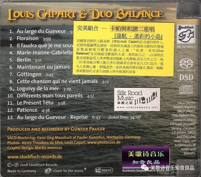 唱片名称:卡帕与和谐二重唱/远航-遥距的小岛SACD