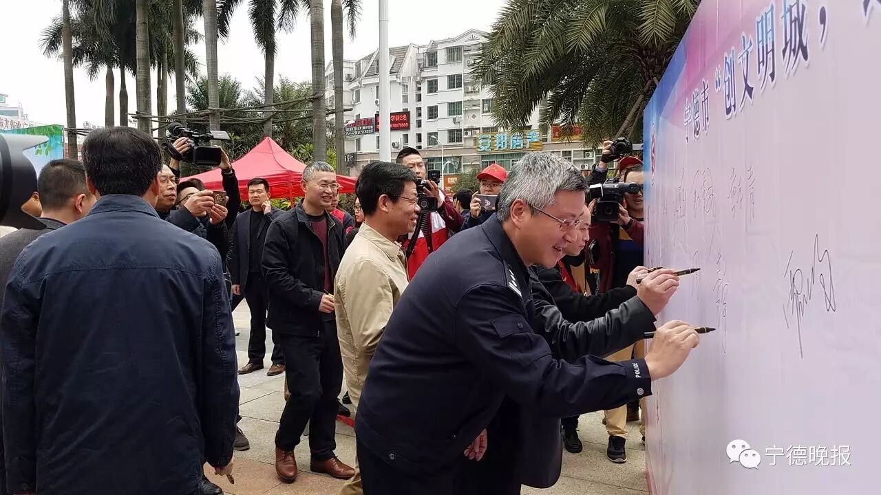3月4日上午,25个网格社区志愿服务队,文明单位、文明学校志愿服务队,宁德新能源志愿服务队,民间志愿服务队等数十个志愿服务队、800多名志愿者们齐聚万达广场主会场和行署大院分会场。九时,主持人宣布启动仪式开始,市委副书记林文芳作关于开展“创文明城,迎运会”社会志愿服务工程启动讲话;志愿者代表宣读致市民一封信倡议书;随后出席领导给参加活动的志愿服务队授旗,“创文明城,迎省运会”社会志愿服务工程启动;现场参加启动仪式的领导和志愿者还进行了签名活动。