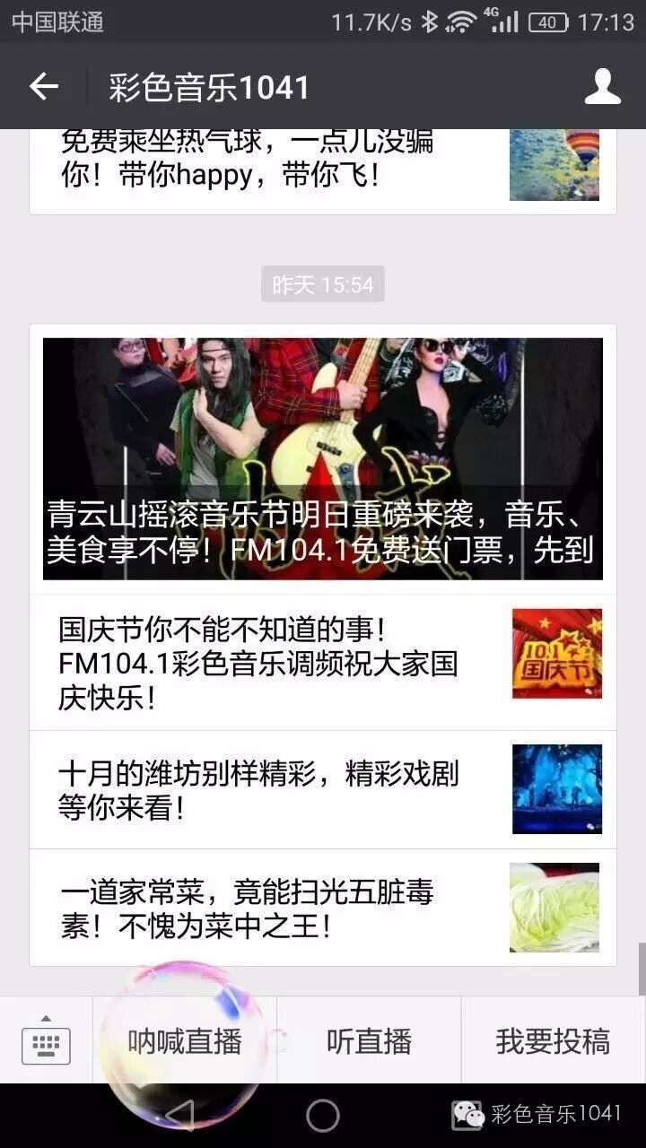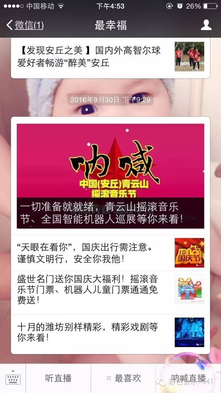 晚上6:30-9:00打开我们的微信公众平台:最幸福或者csyy1041,点击“呐喊直播”就可以躺在床上听摇滚啦!