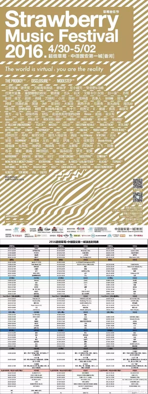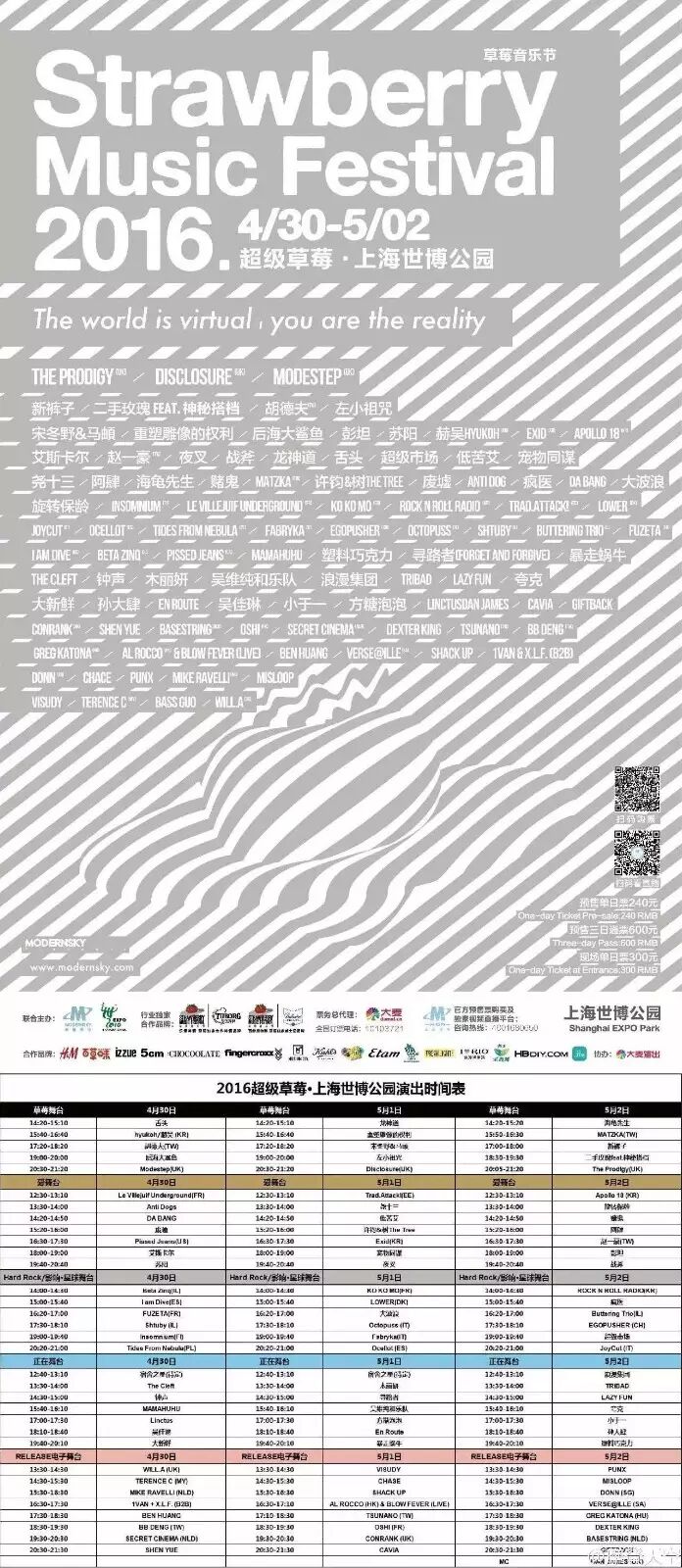 2016上海草莓音乐节将于4月30日在上海世博公园拉开帷幕!为期三天的上海草莓,将设立草莓舞台、爱舞台、Hard Rock/影响·星球舞台 、正在舞台、Release电子舞台五大舞台,超百组艺人加盟。