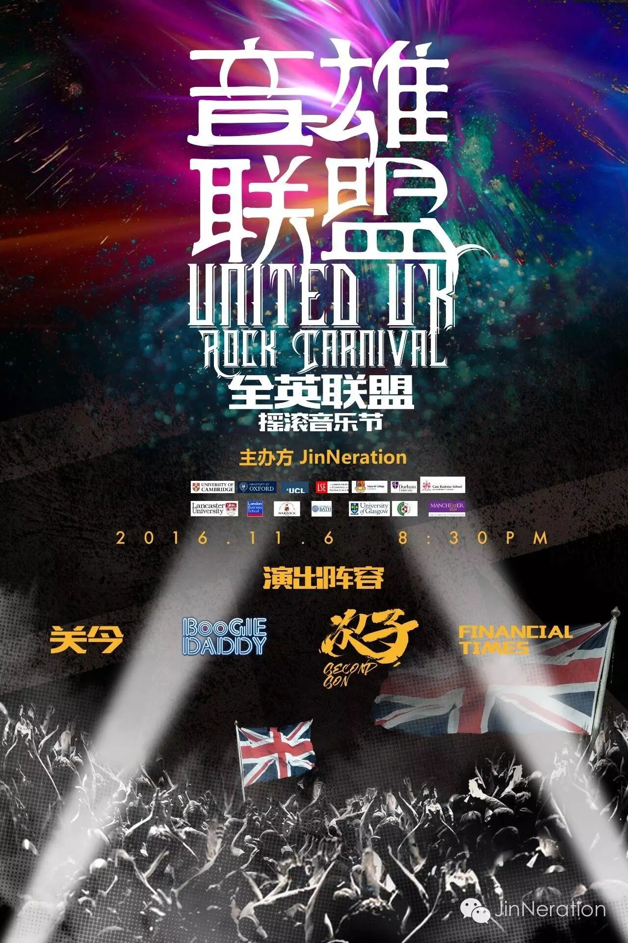 此时,从英归国的Jin将带领成立于上海的音乐厂牌JinNeration联合驻中国的英国各名校校友会举办主题为【全英高校联盟】摇滚音乐节: