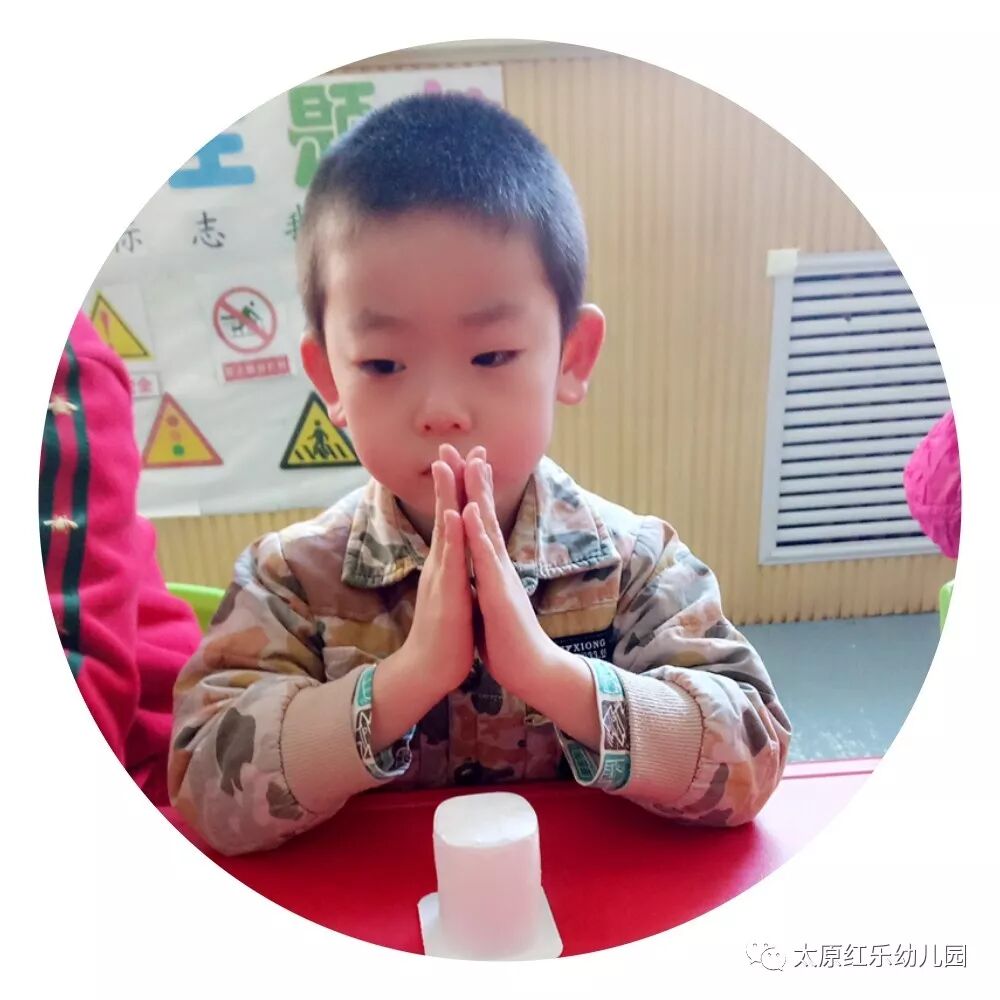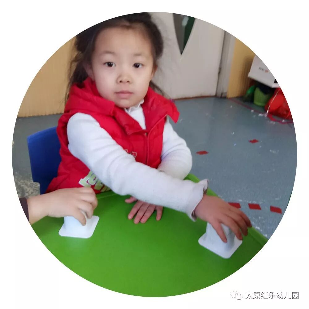 第三步:两手交叉右手在上,右手去抓左手边小朋友的杯子