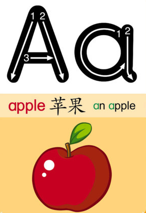 在学习每个字母时,一定要给孩子一个含有这个字母的一个比较直观的单词,这个单词一定要是动物,水果类的名词。而且一定要给孩子一个直观感官的认识,要给孩子看相关实物或者图片等等。