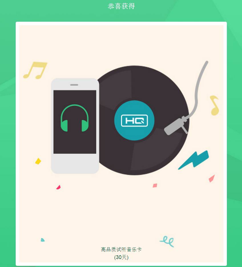 活动奖励:免费领取QQ音乐30天高品质试听卡;