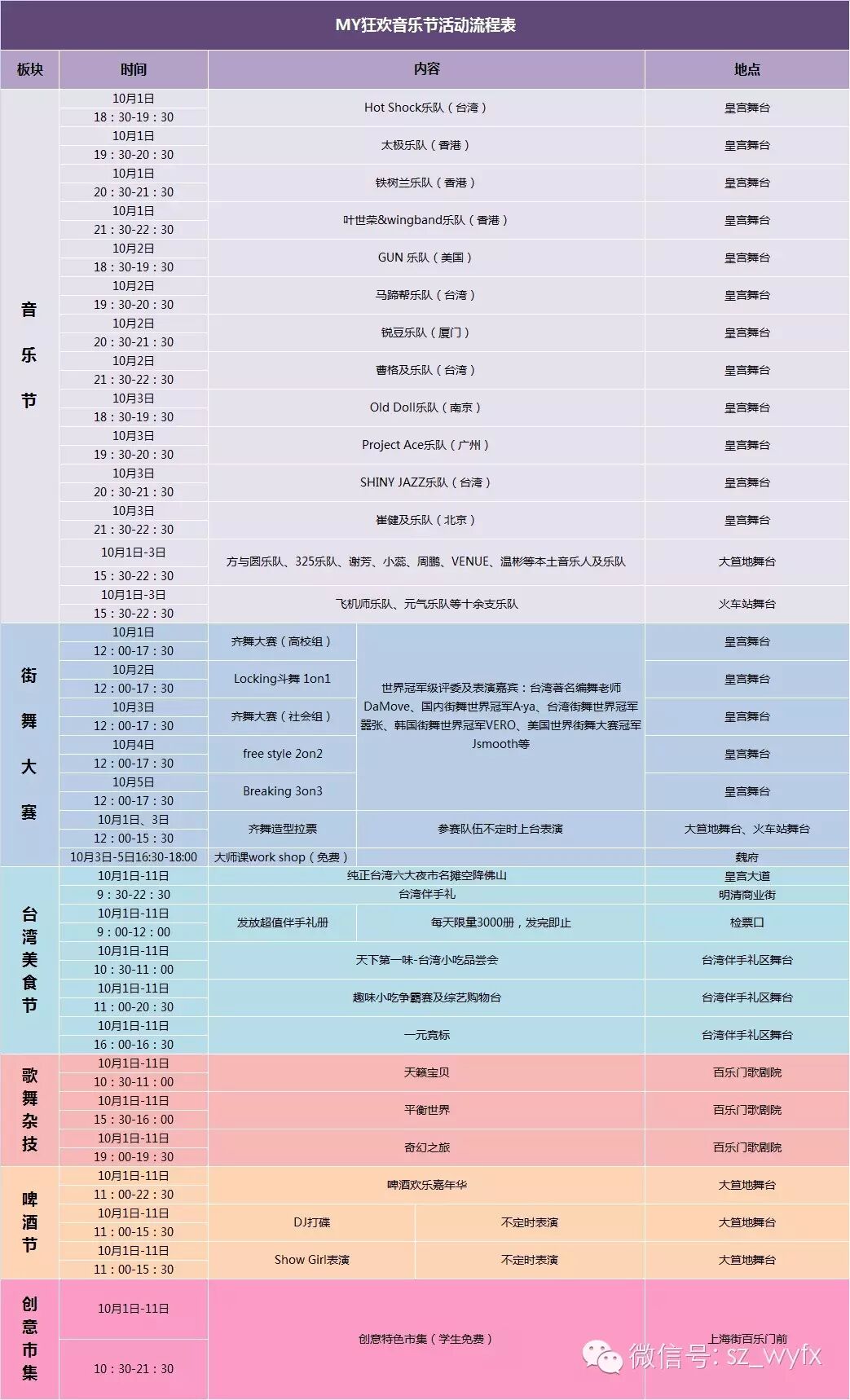 10月1日,主舞台将迎来:叶世荣、香港太极乐队、香港铁树兰乐队、台湾哈骚客HOT SHOCK乐队。