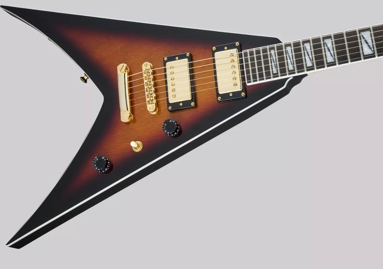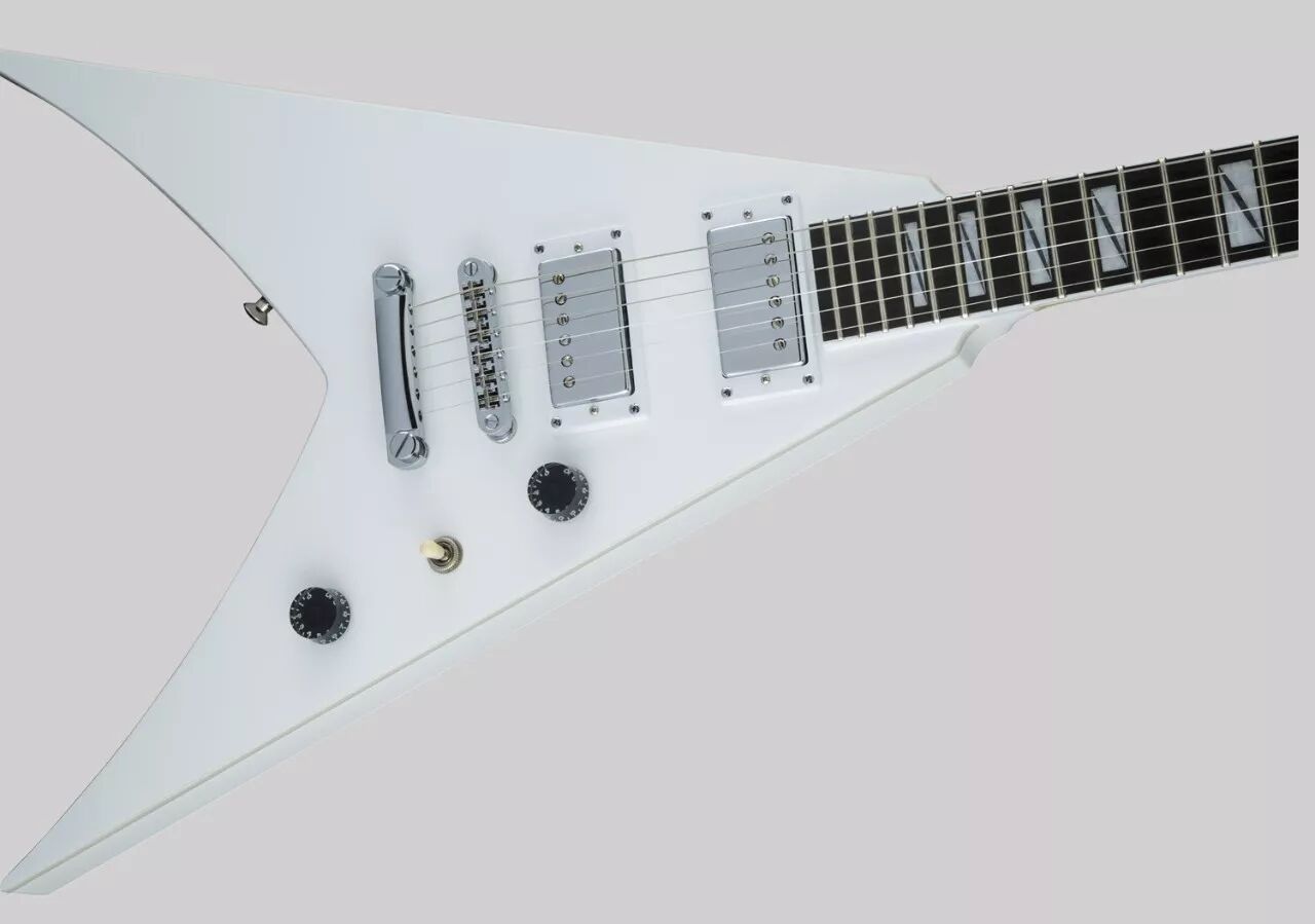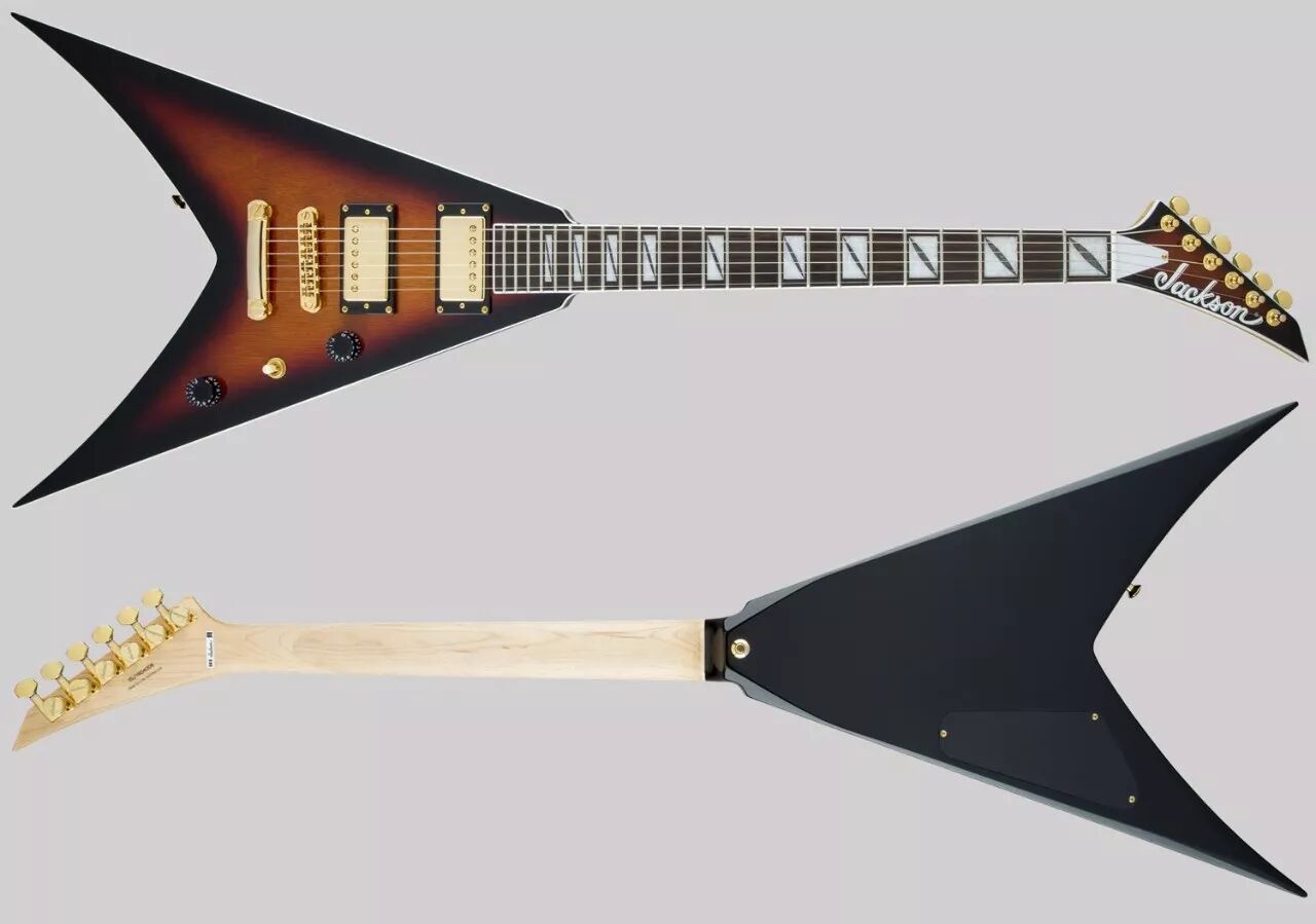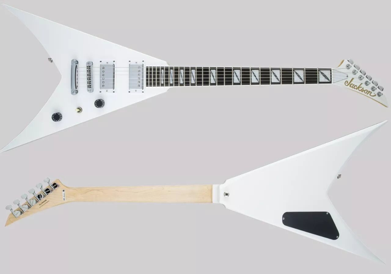 随着重金属音乐在80年代中期的迅猛发展,越来越多的金属乐手不仅在装扮上更为华丽,同时把演奏技巧整体提升到了更高的层级上。很多乐手倾向于要一个看起来和使用性上像RR型吉他,但希望琴体更大一些。Jackson的制琴师们的回应就是King V(以下简称KV)型吉他!他具有更传统的V型琴体设计,但在使用手感上则保持了RR易演奏、超顺畅的手感。但琴头上的偏斜设计让KV看起来更现代并更重金属化。这些特点让KV至今在金属乐坛上成为了长青款。