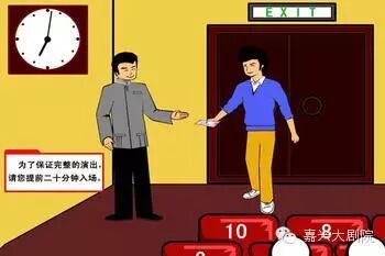 对于迟到观众来说,不仅使您因看不到精彩的开场或得不到完美的艺术享受而遗憾。而在众目睽睽之下走进剧场更加影响了多数按时入场观众的欣赏效果。所以如果您偶然迟到,请您遵守剧场的有关规定,等待曲间(幕间),按照场务人员的指引,轻声入场就近入座。待中场休息时可以回到自己的座位。