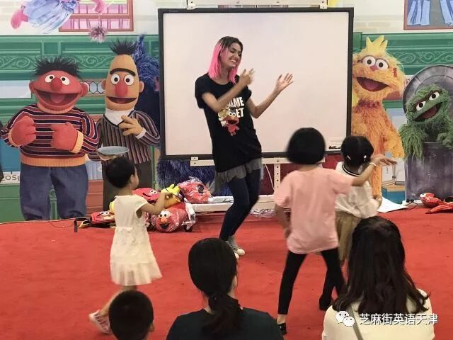 芝麻街英语的中外教老师带领小朋友们一起做游戏。在欢乐的气氛中学习与本次活动相关的英语单词。