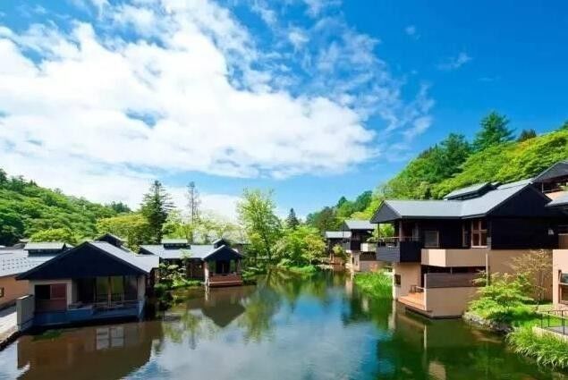 轻井泽最有名的酒店—星のや ,因为高档的设计每年都能吸引大批游客。既依山傍水,又有温泉,而且每间房子看上去就像一个小别墅,犹如世外桃源。