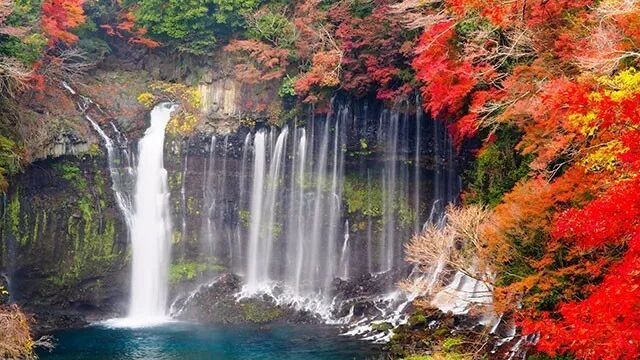 轻井泽的白丝瀑布也是不能错过的一个景点,这个瀑布的水源是从岩石缝隙中喷射出来的,源源不断的水流如无数白丝从岩石缝隙中倾泻而出,然后垂落而下,好似一幕白色丝帐从天而降,美不胜收。