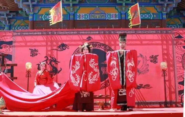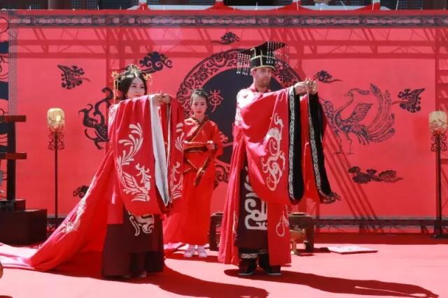 执子之手,与子偕老,这是他们对彼此的承诺。这天,他们共同沃盥、对拜、喝合卺酒、食同牢宴、同拜高堂、同受汉代歌舞,回归到最原始的民族风土,体味着这千年的穿梭人情,承载着他们对未来的憧憬,这对佳偶的幸福之路也就此开启。
