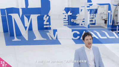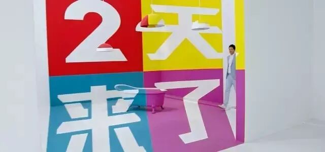 你看到“2天来了”凌空出现,但其实是几十片悬挂在半空的彩色碎片。