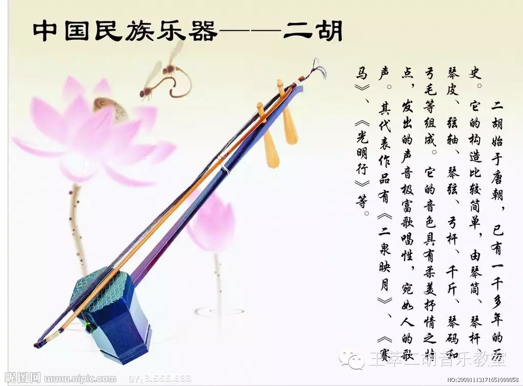 二胡(拼音:Erhu) 始于唐朝,称“奚琴",至今已有一千多年的历史。是中西方拉弦乐器和弹拔乐器的总称。二胡又名“胡琴”,二胡是中华民族乐器家族中主要的弓弦乐器(擦弦乐器)之一。