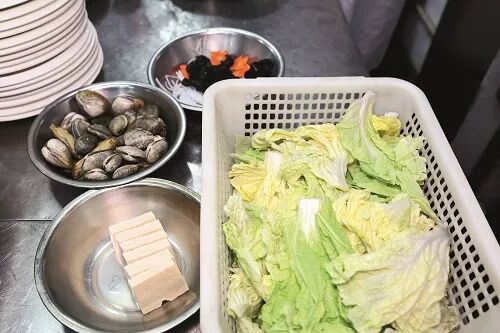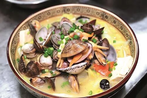 销售特色 此菜根据白菜炖豆腐改良而来,加入了特色的海鲜类食材,入口鲜美,几种贝壳肉质都比较嫩,焯水要控制好火候。