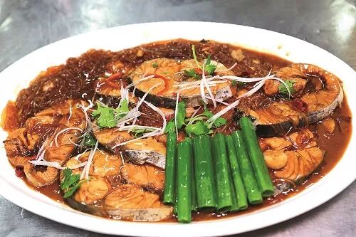 销售特色 这款菜选用大鲅鱼,肉质鲜美,用酱油等焖制,加上粉条,非常入味。操作时候需要注意焖的时候火不宜大,要小火20分钟才能入味,收汁时火要猛。