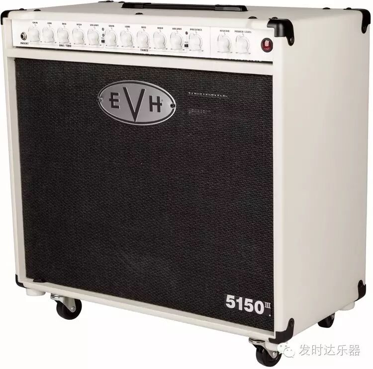 这款EVH 5150III®组合音箱是一款搭载了一个Celestion® 16欧姆扬声器和三个通道(clean, crunch和lead)。通过七个JJ ECC83 (12AX7)前级电子管和两个JJ 6L6功率电子管作为输出动力,另外在前面板中还搭载了可调节功率输出旋钮,上至50瓦下至1瓦均可调节。