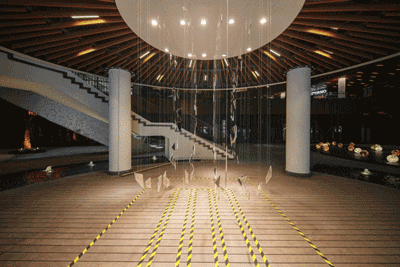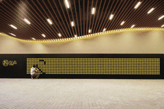 月亮究竟是圆的,弯的,抑或是一条细线?欣赏这个作品需要打破常规,跟着小编一起镜中寻月!由无数三角镜片打造的这个作品在日光和射灯的照射下千变万化,就和月亮一样让人捉摸不透!你猜,它到底是什么形状的呢?